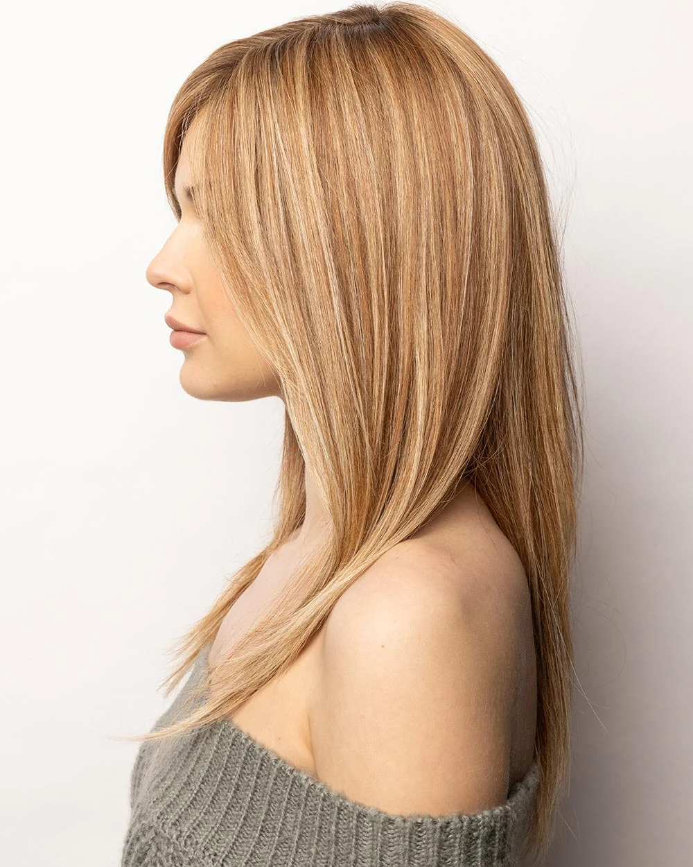 Brielle from our Amore Collection is a long Remy human hair (50:50 Chinese/Indian) wig. This straight ready-to-wear wig is a soft, feminine, face-framing layer style that creates an absolute stunning look. Brielle is lace front, monofilament top, silicon strips and soft net back to provide a maximum quality and comfort. It’s hand-tied wig is constructed by carefully stitching each hair fiber strand by strand. This meticulous design produces a lighter and more comfortable wig.