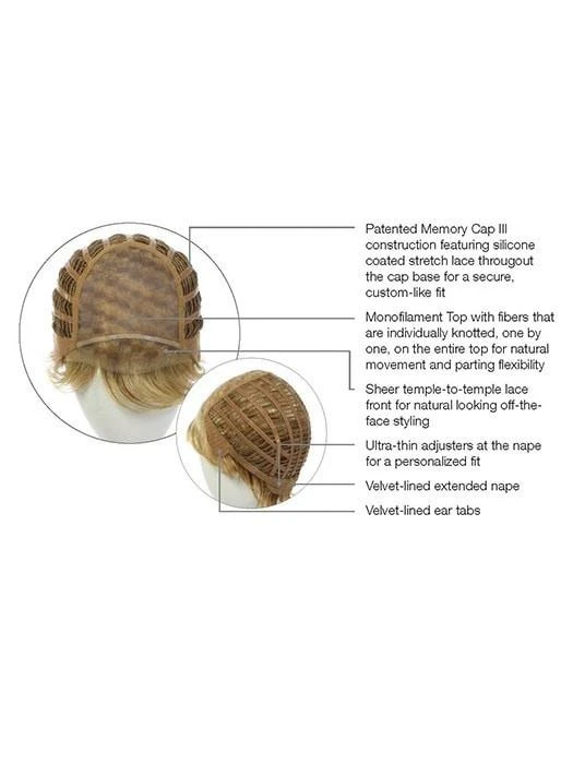 Crushing on Casual Wig by Raquel Welch is a short cut wig with plenty of style and fullness. Beautifully tapered lengths throughout offer a multitude of styling options from full and soft to textured and piece-y. The slightly angled fringe can be worn onto the face or swept away while the razor cut nape creates a soft clean look in the back. The Sheer Indulgence temple-to-temple lace front monofilament top allows for natural looking off-the-face styling and parting options.