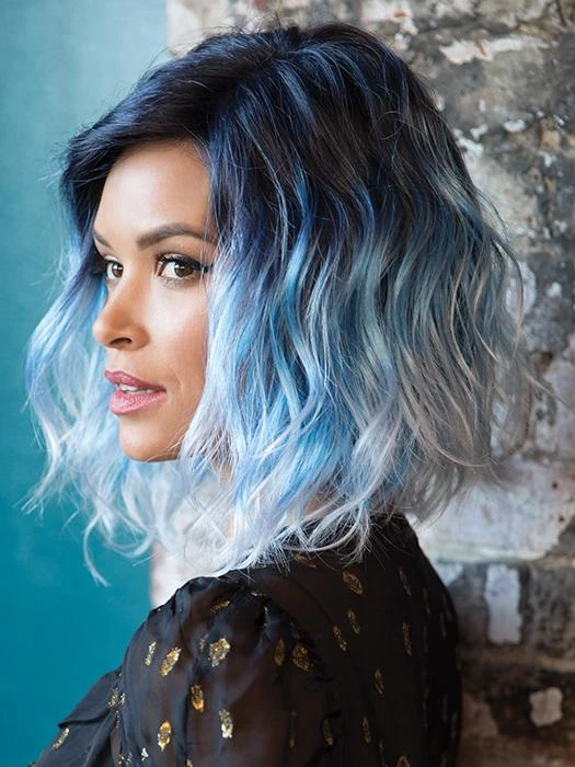 The Evanna Wig by Rene of Paris has salon finish beach wave curls that fall shoulder length in this trendy bob wig with a new lace-front mono-part cap. The trendy soft wave is very flattering for all face shapes. To style, run your finger through the soft-angled waved bob, tousle them for additional volume and texture.