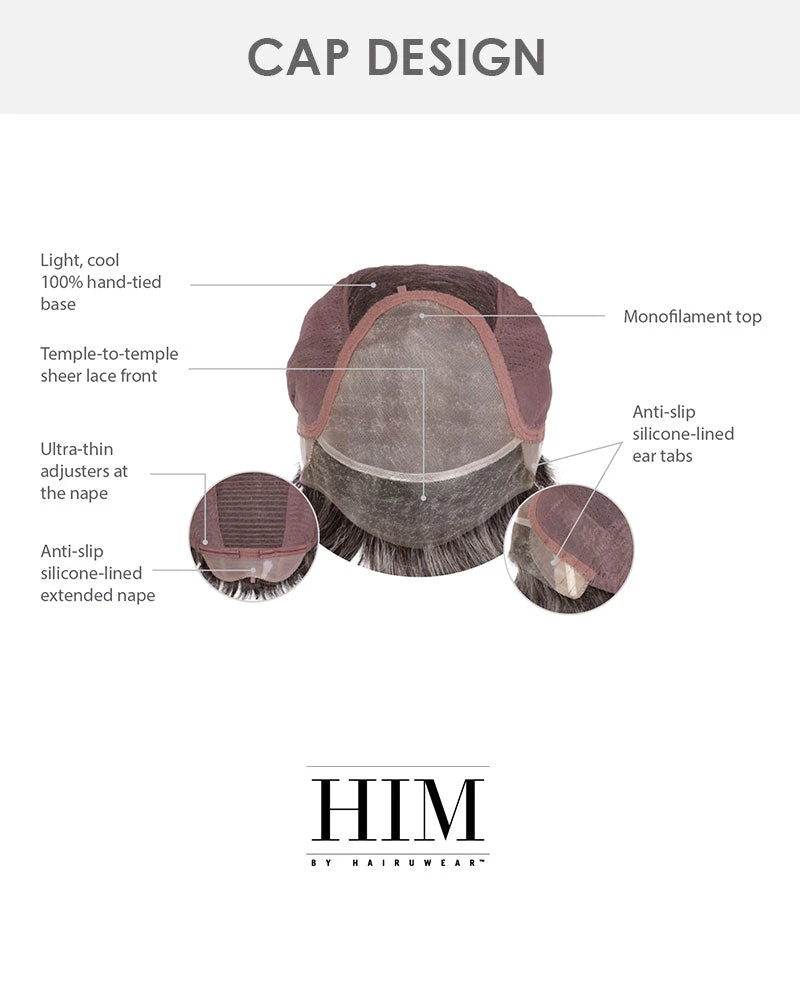The touchable light wave texture throughout this dashing, low-density style has all the best moves thanks to a completely hand-tied construction. Customization options let HIM make a bold fashion statement or keep his look quietly classic. The lace front hairline is specially designed to look remarkably realistic and clinch that important first impression.