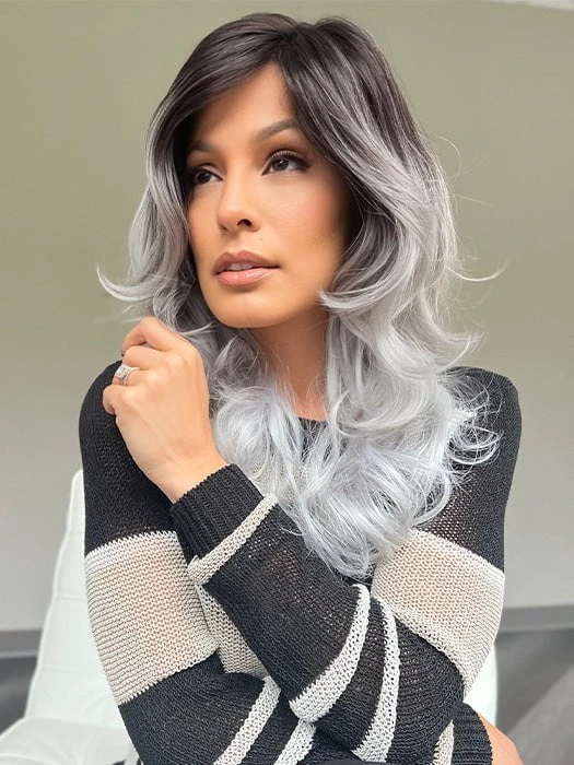 Orchid by Estetica Designs Wigs is a long, voluminous wig with flowing loose waves, face-framing layers, and side fringe. Orchid has also a monofilament part, combined with a ready-to-wear lace front and an open-cap construction.