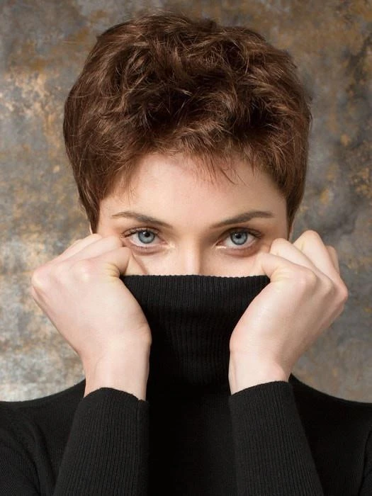 BEST SELLER | Risk by Ellen Wille is a lightweight pixie cut wig with short bangs it weighs less than two ounces! This wig features a lace front and monofilament crown, and is ideal for a petite to average head size. The density of the ready-to-wear synthetic hair looks more like natural hair and requires little to no customization or thinning. Risk is part of the Ellen Wille Hair Power collection. Also available as Risk Comfort with a 100% hand-tied cap. Risk is also available in a great selection of grey colors: Pepper Mix, Salt & Pepper Mix, Smoke Mix and Silver Mist White.