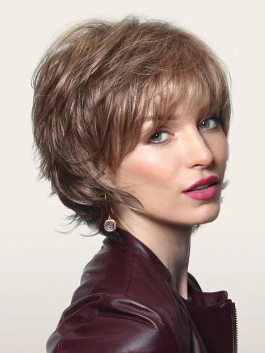 BEST SELLERÂ |Â Sky by Noriko is a short wig, a face flattering bob with feathered layers and wispy ends. From the thinned bang, to the razored pieces around the border, you’ll look effortlessly put together in this top seller.