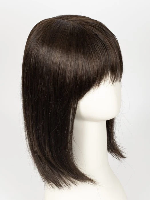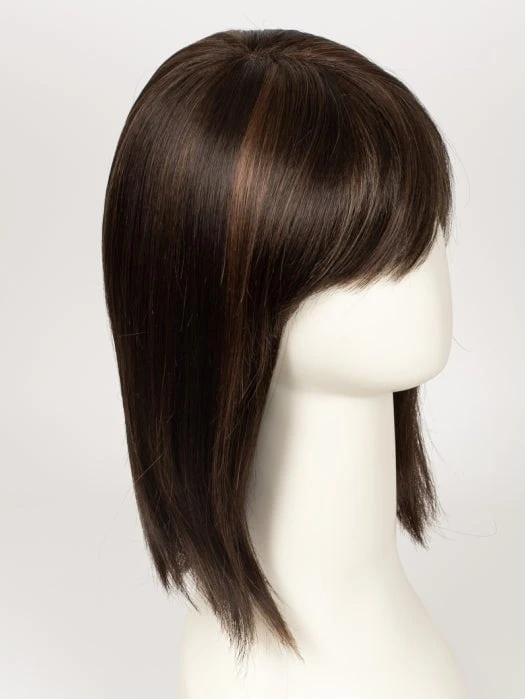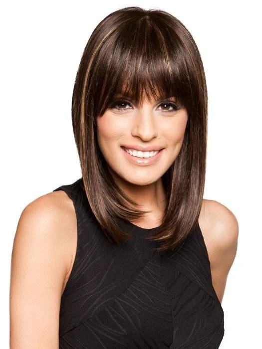 Tatum by Amore is a fashion-forward straight look with a center part and blunt fringe combined with a double-layer monofilament cap construction.Â